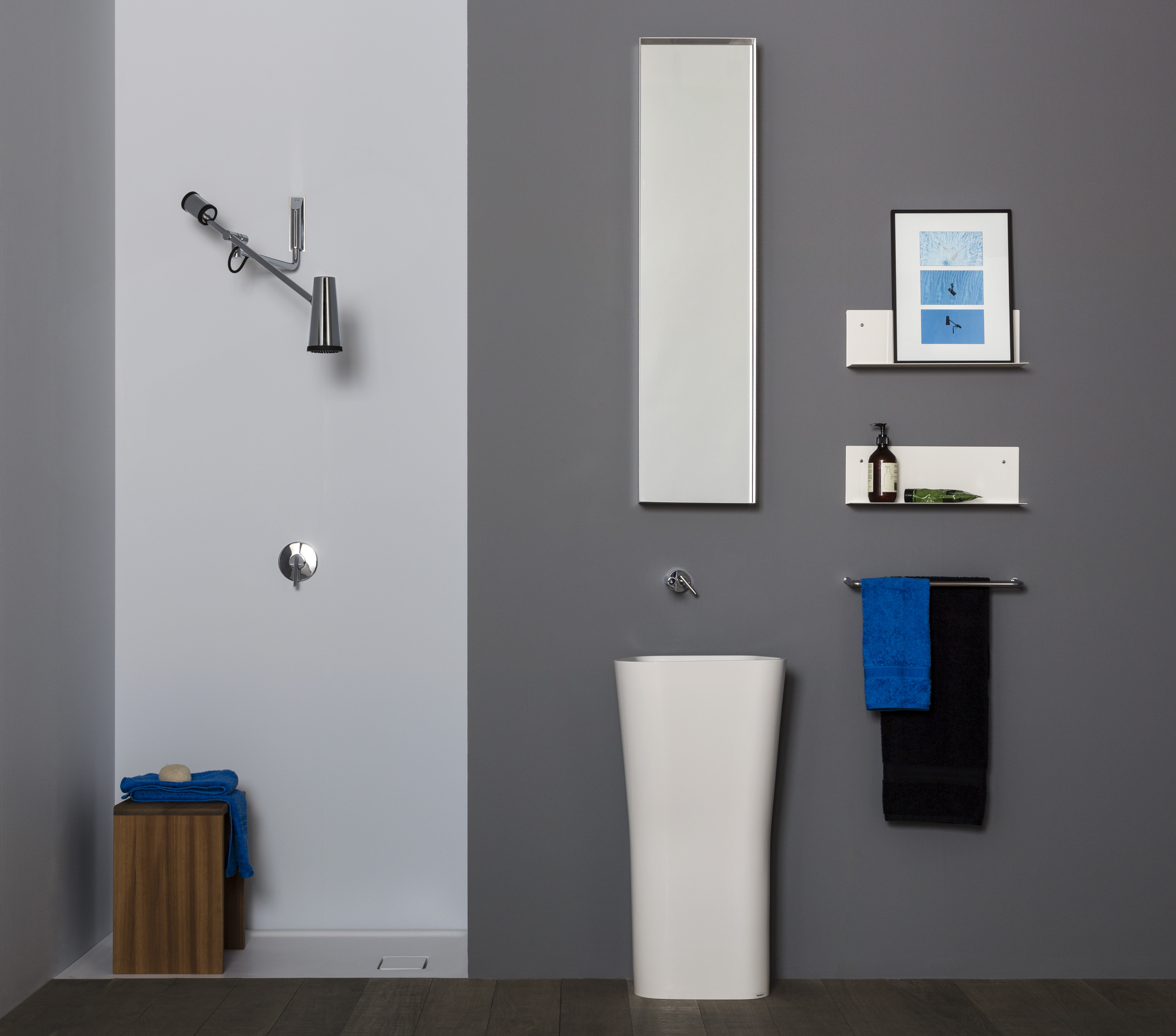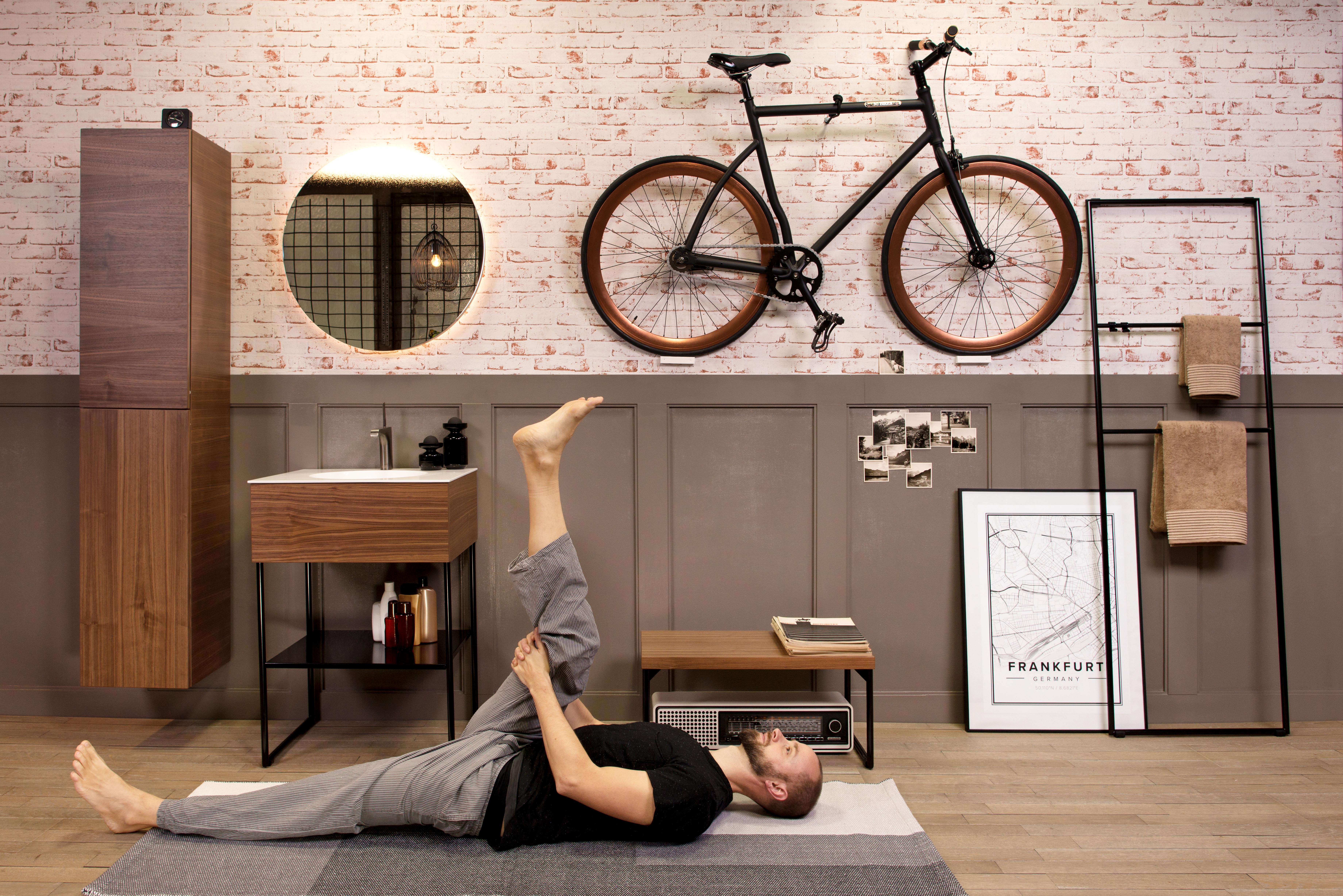 Prywatna sala gimnastyczna, to wizja która kojarzy się nam z amerykańskimi filmami z lat 70. Rozpuszczeni, piękni i bogaci zaczynali swój dzień od kapryśnych śniadań i ćwiczeń z trenerem. Od tamtego czasu minęło 40 lat i dokładnie ten sam styl życia zaczął prowadzić nasz świat. Dziś dla większości osób pracujących w dużych biurach i korporacjach dzień zaczyna się od kawy i porannego joggingu, czy basenu, które nie są już tylko przywilejem wyższych sfer, ale stają się normą wyznaczającą poziom życia klasy średniej. Dlatego możemy powiedzieć, że również nasza łazienka przyjęła nową funkcję – stała się mini salą gimnastyczną, a podczas targów zaobserwowałam kilka stylizacji wnętrz, które ułatwiają nadanie tej nowej funkcji.