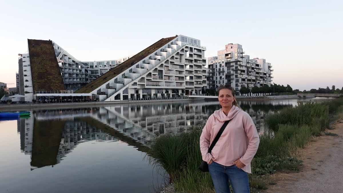 Stoisz naprzeciw, chyba najnowocześniejszego, osiedla 8-Tallet i jesteś rozdarty/a między modernistyczną bryłą budynku, a widokiem krów pasących się na polu. Mijany/a przez grupki sąsiadów, wracających z kolacji urządzanej na trawie (bo przecież hygge to nie tylko zimowe skarpety oraz świeczki, jak podpowiadają nam zdjęcia), masz wrażenie, że doświadczasz performance w ramach festiwalu designu.