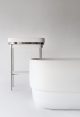 W Ribbon umywalka jest owijana przez pasek z metalu, który ją podtrzymuje. Charakterystyczne pofałdowanie znajdziemy również w wannie, która występuje w dwóch wariantach – z lub bez metalowej otoczki cokołu. Długa i wąska wstęga metalu delikatnie obrysowuje też lustro, które uzupełnia kolekcję.
