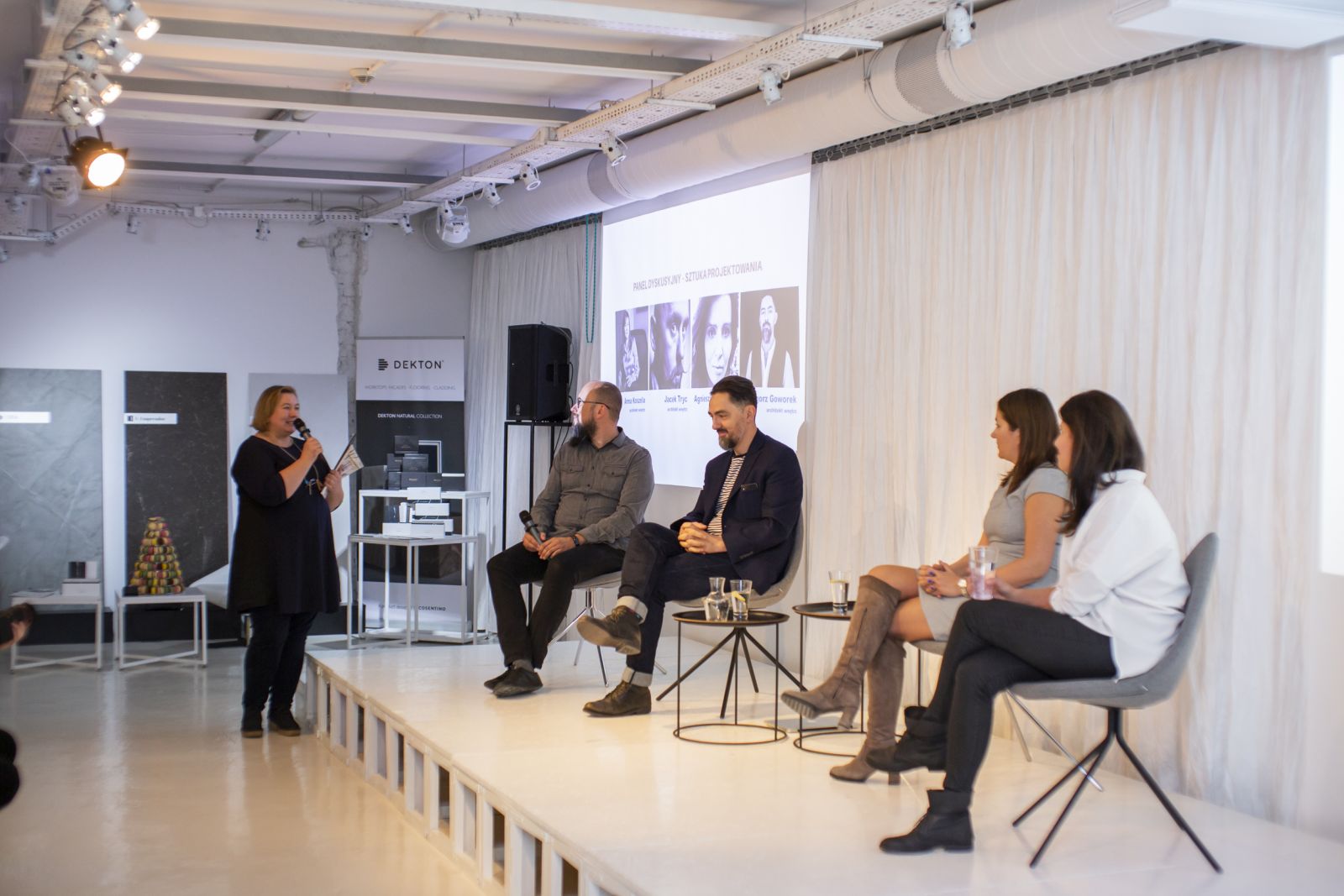 Spotkanie otworzyła jego pomysłodawczyni, właścicielka agencji OKK! PR – Olga Kisiel-Konopka. Następnie nadszedł czas na część merytoryczną, którą poprowadziła Anna Grużewska, redaktor naczelna czasopisma Czas na Wnętrze. Jako pierwsi, wystąpili Aneta Konowrocka i Miguel Sierra z Cosentino Polska. Opowiedzieli o najnowszych trendach i sztuce wykorzystania kamienia w projektowaniu, a także przybliżyli historię marki. Kolejna prelekcja dotyczyła sztuki okiennych dekoracji. O tym, jakie wyposażenie wybrać, o najnowszych trendach i możliwościach opowiedziała Agnieszka Gołębiewska – kierownik marketingu firmy Anwis. Po raz kolejny na OKK! design można było wysłuchać prelekcji Doroty Karbowskiej-Zawadzkiej i Jacka Kuli z firmy Barlinek. Tym razem mówili o tym, jak marka dba o zrównoważony rozwój i ochronę środowiska. Funkcje w meblach – technologia NASA dla wybranych czy wygoda dla wszystkich? O tym, jak nowe rozwiązania technologiczne zmieniają oblicze mebli wypoczynkowych, opowiedziała Justyna Roźniakowska, marketing manager firmy Gala Collezione.