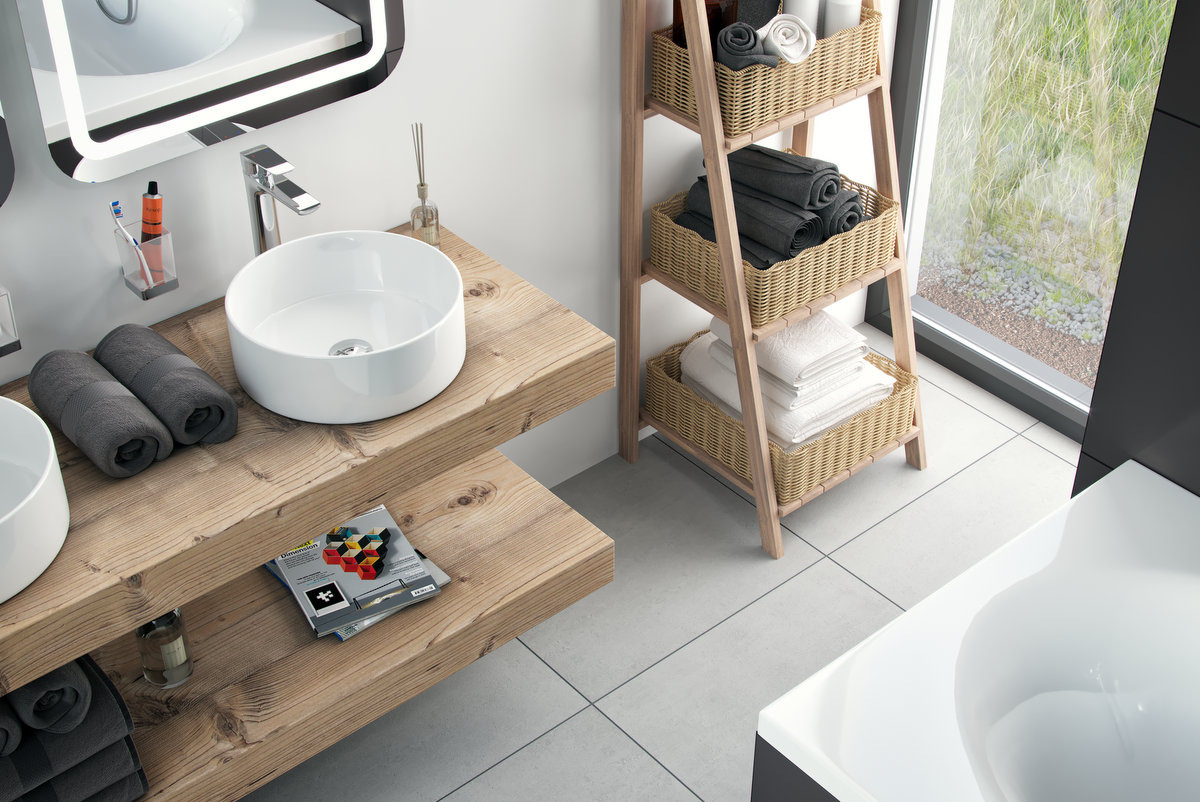 Umywalki – wspólnie z dopasowaną do nich szafką i lustrem – zawsze stanowią ważny element łazienkowej aranżacji i warto ich doborowi poświęcić więcej uwagi. Dziś do naszych łazienkowych wnętrz najczęściej wybieramy umywalki nablatowe. Są nowoczesne, estetyczne i znakomicie pasują do różnych stylów wnętrzarskich.