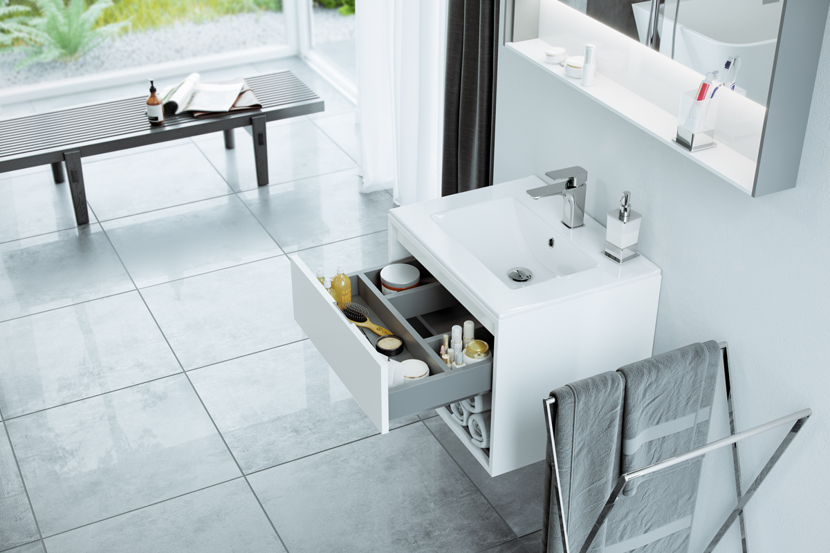 Co również ważne – meble Tuto dostarczane są gotowe do montażu, nie musimy poświęcać czasu na ich składanie. W serii znajdziemy zarówno szafki podumywalkowe, jak i słupki czy szafki wiszące.