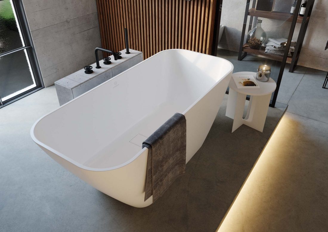 Całość oferty FJORDD pomyślana została tak, by dać szerokie pole do idealnego spersonalizowania łazienki. Stąd wanny dostawiane o ściany lub montowane w narożniku, czy też wolnostojące. Znajdziemy tu kształty eliptyczne, organiczne, formy inspirowane grotem strzały z mocniej zarysowanymi łukami lub nawiązujące do ikonicznego designu smartfona. Wszystkie łączy subtelne, uniwersalne wzornictwo, co sprawia, że znajdą miejsce w każdej łazience. Wanny i umywalki dają również pełną swobodę wyboru koloru baterii, ponieważ mają nowoczesny, jednolity charakter. Uzyskano to dzięki maskownicom odpływu wykonanym z tego samego materiału co produkt, czyli z kompozytu Aquastone®.