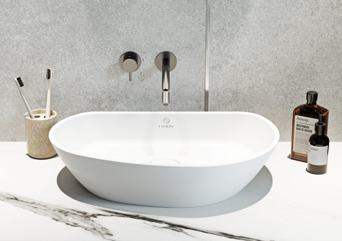 Wszystkie wanny i umywalki marki wykonane są z kamiennego kompozytu Aquastone®, składającego się w dwóch trzecich ze sproszkowanej skały dolomitowej. Innowacyjny materiał naturalnego pochodzenia daje szerokie możliwości formowania różnych kształtów. Stąd wyrafinowany design produktów FJORDD, które dostępne są w wykończeniu błyszczącym oraz w coraz popularniejszym macie. Dodatkowo wewnątrz i na zewnątrz jednego modelu można uzyskać dwa różne kolory. FJORDD oferuje w standardzie podwyższoną hydrofobowość, co znacznie ułatwia czyszczenie powierzchni. A co szczególnie ważne, kompozyt ma świetne parametry termiczne, czyli długo utrzymuje ciepło wody, czym góruje nad akrylem i stalą.