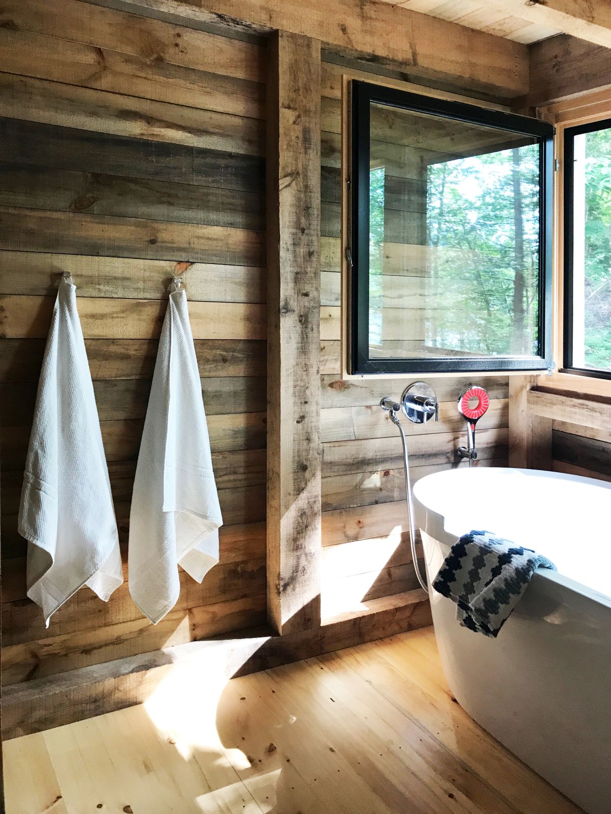 Po długiej wędrówce lub dniu spędzonym nad jeziorem goście mogą zrelaksować się w wannie Starck firmy Duravit, która umieszczona jest bezpośrednio przy oknie łazienki. Dzięki temu można podziwiać okoliczne drzewa i przyrodę, stanowiącą prawdziwy azyl z dala od stresu i zgiełku cywilizacji.