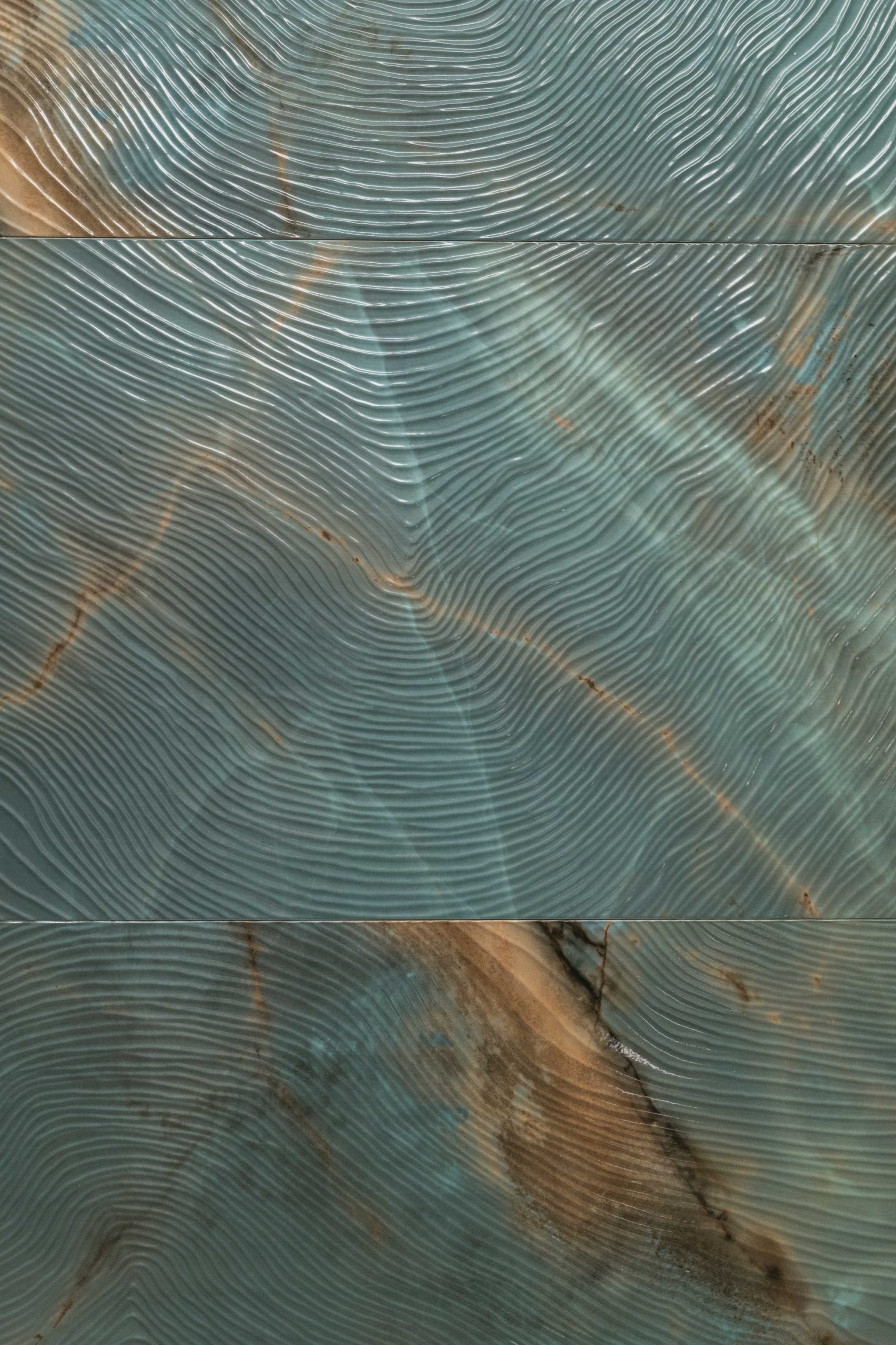 Ciekawą propozycją są faktury drewna na dużym formacie – miła odmiana wobec dominujących wszędzie kamieni. Uwagę przyciąga zwłaszcza wzór i kolorystyka linii Onice. Ta nawiązująca do onyksu płytka sprawdzi sie zarówno jako okładzina, jak też w meblarstwie.