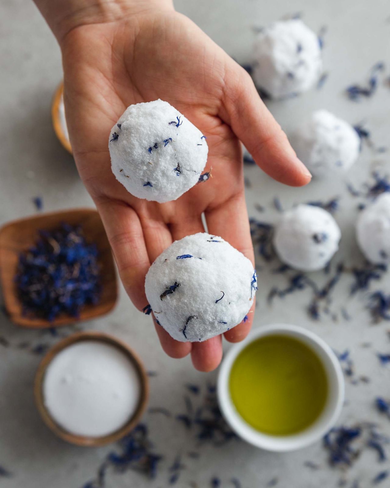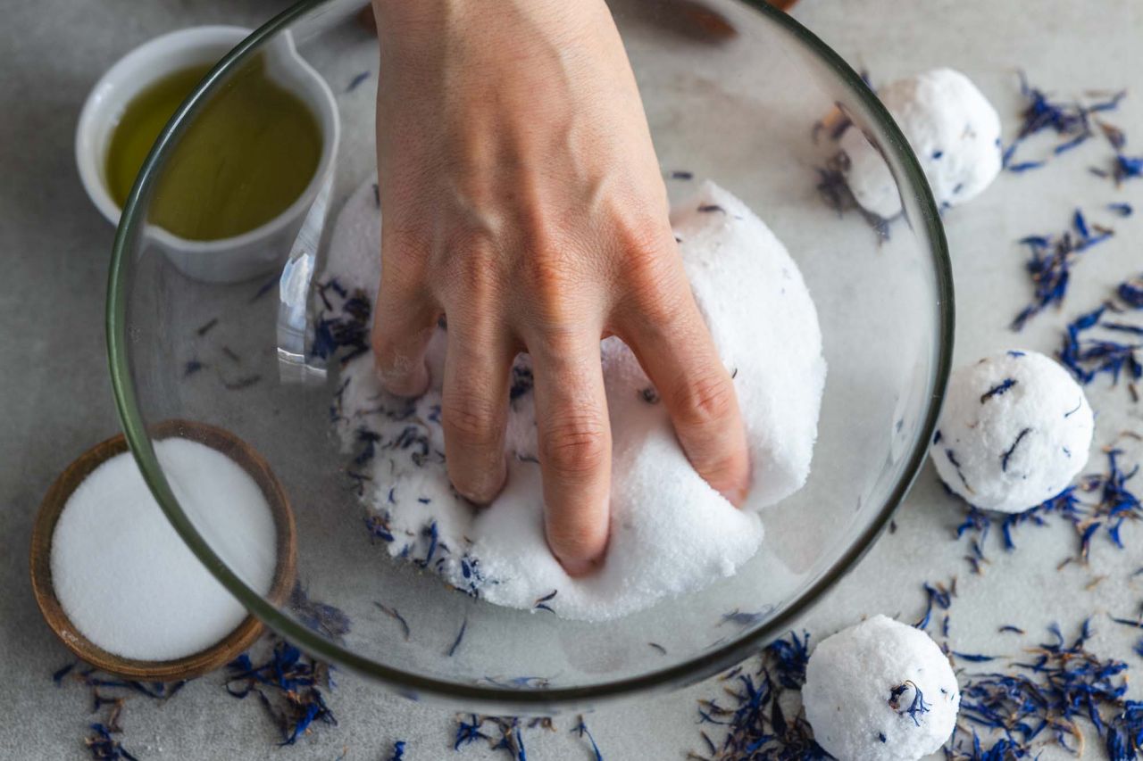 Kolejnym kosmetykiem, który możesz wykonać w domowych warunkach, jest kula do kąpieli. Zrobienie jej to frajda przede wszystkim dla dzieci. Soda oczyszczona i kwasek cytrynowy oczyszczają skórę, dodatek oleju delikatnie ją odżywia, zaś kwiaty bławatka dodają kosmetykowi uroku.