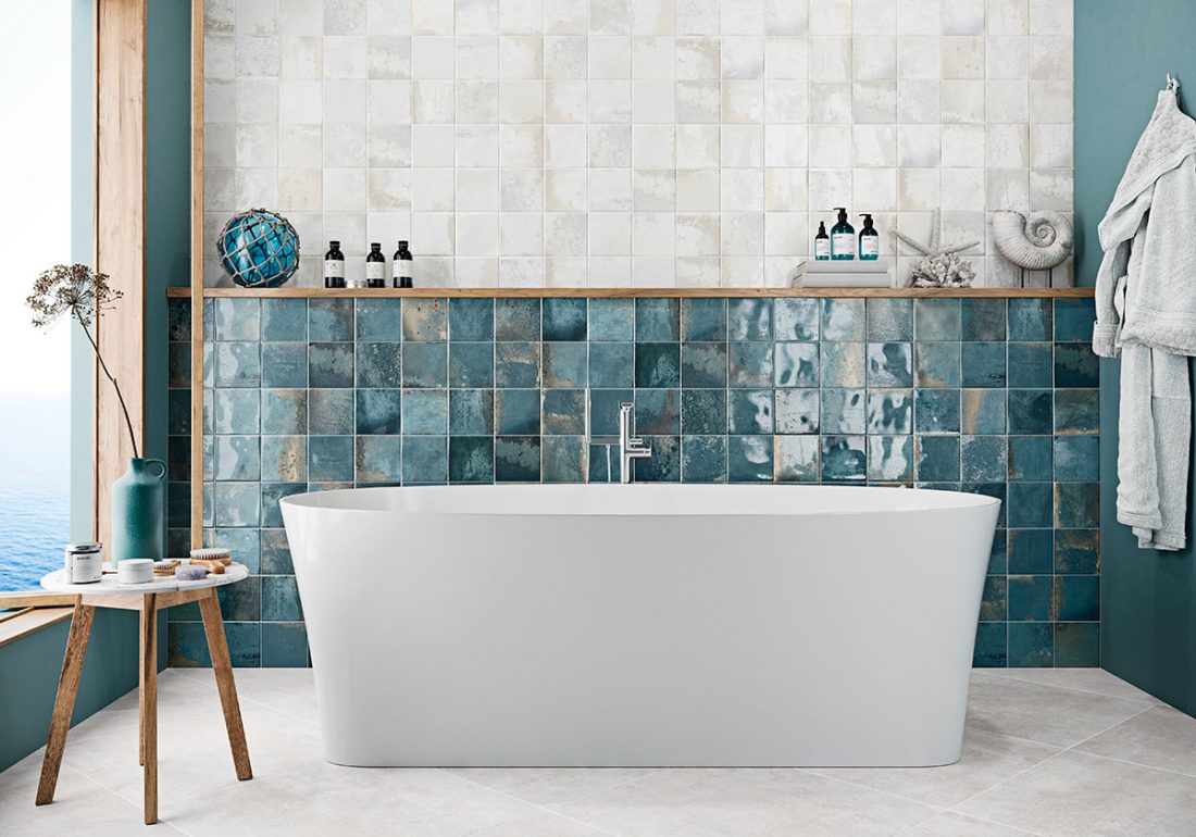 Połyskujące płytki w białym lub jasnoszarym kolorze np. z najnowszej kolekcji Provenza od marki Vijo w połączeniu z matowymi powierzchniami stworzą zgrany duet, który rozświetli łazienkę, nadając jej więcej przestrzeni i życia.
