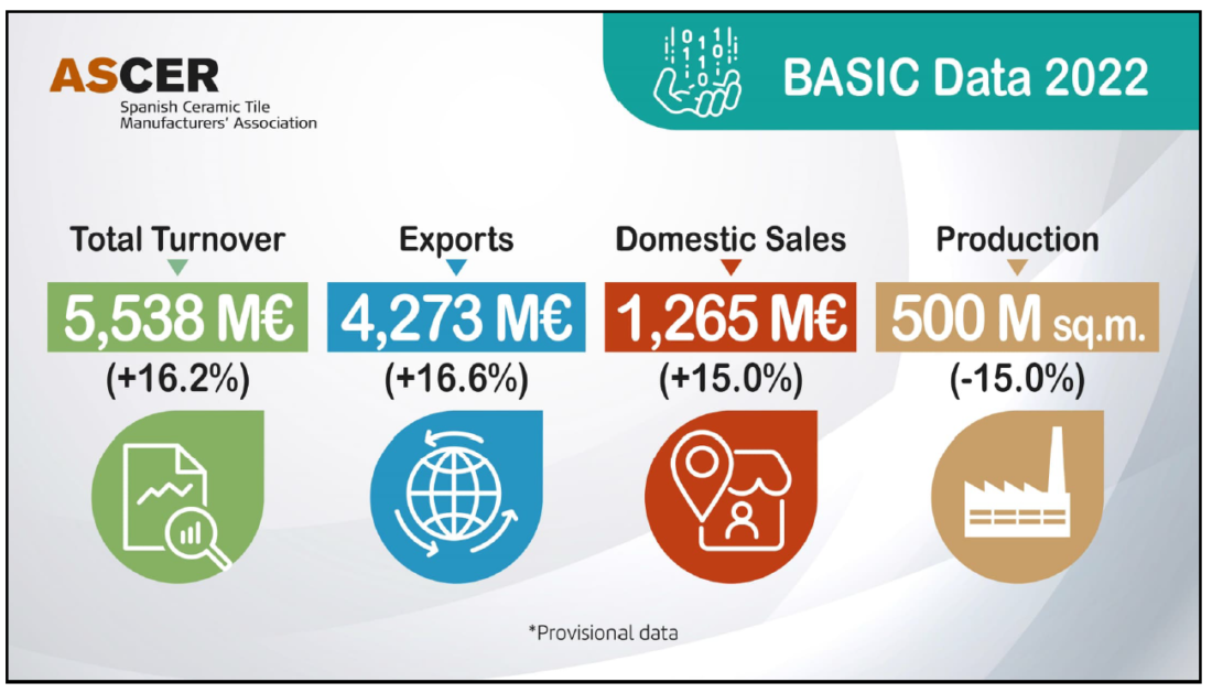 Choć na pierwszy rzut oka dane są pozytywne, prezes ASCER zastrzegał, że „wzrost obrotów wynika głównie ze wzrostu średniej ceny produktów, przez które firmy starały się wchłonąć część wzrostu kosztów produkcji (głównie energii)”. Na wyniki za rok 2022 duży wpływ miał kryzys energetyczny, a wpływ kosztów gazu na firmy był znaczący. W 2022 wyprodukowano 500 mln mkw płytek, co jest o 15% mniej niż w roku poprzedzającym. ASCER szacuje że mimo to Hiszpania jest wciąż największym producentem płytek w Unii Europejskiej. Niestety ostatni rok przyniósł spore redukcje zatrudnienia i kłopoty firm – prezes ASCER przestrzega, że sytuacja może być groźna dla hiszpańskiej płytki. Wielu specjalistów, którzy stracili pracę, może swoje doświadczenie przenieść do dynamicznie rozwijających się firm zagranicznych.