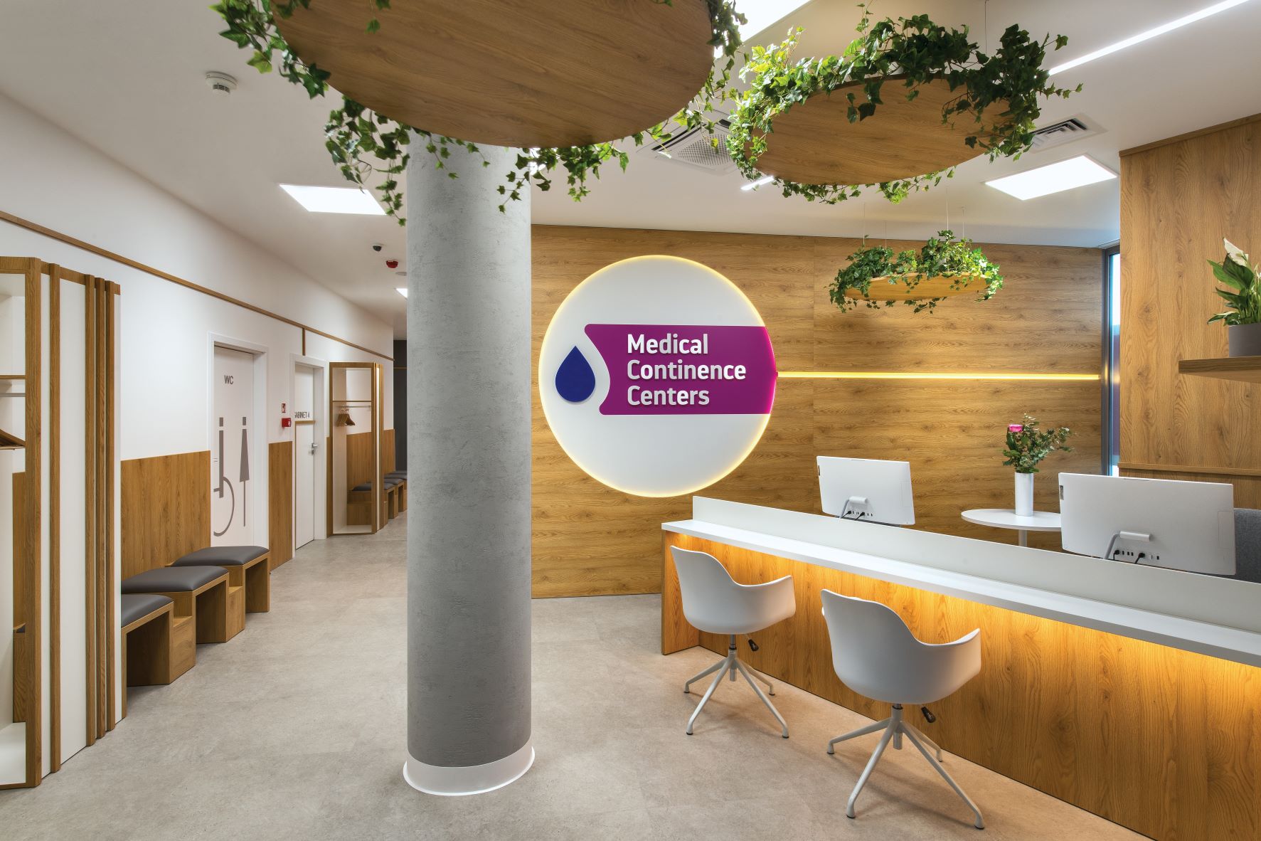 Centrum Medyczne MCC (Medical Continence Centers) w Warszawie to pierwszy w Polsce kompleksowy ośrodek diagnozowania oraz leczenia inkontynencji u kobiet i mężczyzn. Obok m.in. ośmiu gabinetów lekarskich i fizjoterapeutycznych na powierzchni prawie 1000 m2 znalazły się także dwie sale do rehabilitacji oraz kolorowe łazienki. O aranżację wnętrz zadbała Justyna Smolec.