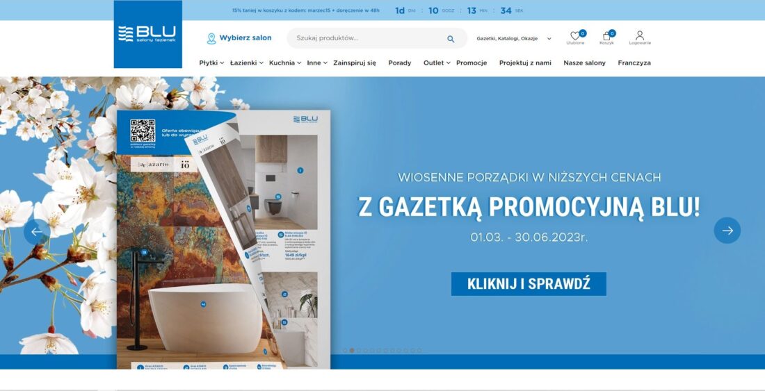 Sieć salonów łazienek BLU rozwija się prężnie nie tylko na rynku offline, ale również online. Nowa strona internetowa, która do niedawna oferowała jedynie rezerwacje w wybranym przez klienta salonie, aktualnie zmieniła się w pełnoprawną platformę sprzedażową.