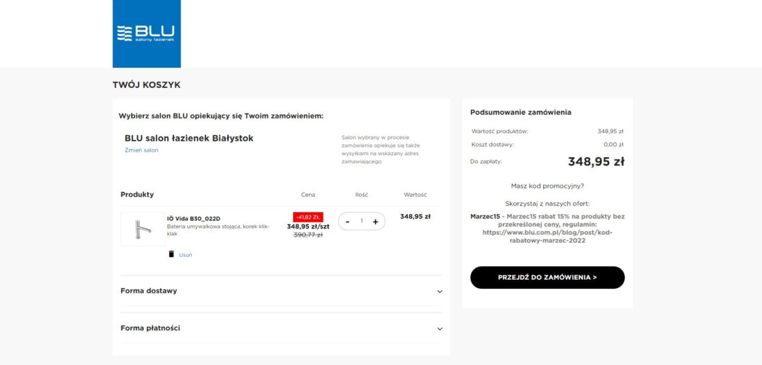 Wprowadzenie sprzedaży przez internet to odpowiedź na oczekiwania klientów, którzy cenią sobie wygodę i szybkość zakupów bez wychodzenia z domu. Uruchomienie koszyka umożliwiło użytkownikom dostarczenie produktów nie tylko do wybranego salonu BLU, tak jak działało się to wcześniej, ale również pod wskazany przez nich adres i to w zaledwie 48h!