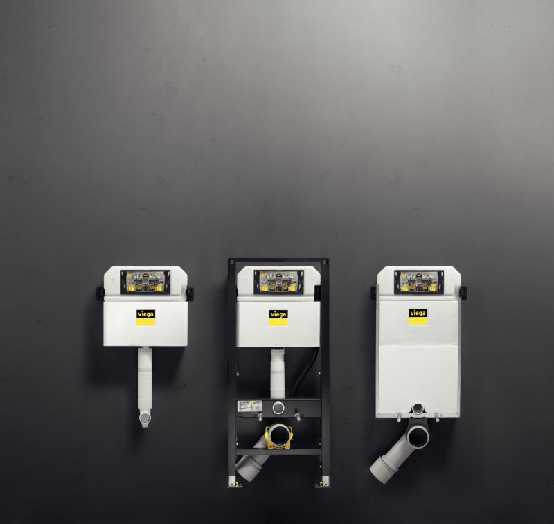 Firma Viega oferuje szeroki wybór elementów podtynkowych, przystosowanych do różnorodnych sytuacji montażowych. Co ważne, modele z serii Prevista charakteryzują się niewielką głębokością zabudowy. Już standardowy stelaż Prevista Dry posiada jeden z najpłytszych zbiorników wśród produktów dostępnych obecnie na rynku – jedynie 12 cm. W asortymencie firmy Viega znajdziemy również wariant „slim” ze zbiornikiem o głębokości 8 cm, przy zachowaniu typowej szerokości 50 cm. Jako alternatywne rozwiązanie można też zastosować element Prevista Pure – czyli spłuczkę przygotowaną do zabudowy mokrej, oferowaną również w wersji ze zbiornikiem 8 cm. Mniejsza głębokość zabudowy pozwala zyskać cenne centymetry, co w małej łazience ma szczególne znaczenie.