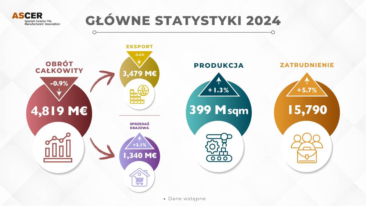 Podczas targów Cevisama 2025 poznaliśmy roczny bilans oraz nowości produktowe hiszpańskiego przemysłu ceramicznego. Przychód za 2024 rok był o ok. 0,9% niższy niż w 2023 roku. Wzrosła sprzedaż krajowa, zatrudnienie oraz produkcja. Ponad połowa eksportu trafia do Europy, choć większość krajów notuje spadki. Największy rynek eksportowy dla rynku hiszpańskiego – USA – notuje wzrost o 3,1%.