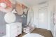W wydzielonym korytarzu w tej części apartamentu architektka zaprojektowała duże, funkcjonalne szafy. W sypialni przeważają miękkie materiały tapicerowanego łóżka, zagłówka oraz pufy wykonanych na zamówienie pod projekt architektki. Wykorzystano tu także – podobnie jak w salonie – rozwiązanie ukrywające telewizor. Przeważająca w projekcie paleta barw w przypadku pokoju małej dziewczynki przełamana została akcentami w odcieniu pudrowego różu. Nie zabrakło tu właściwych dla królestwa małej księżniczki akcentów – bajkowej tapety, regałów w formie małych kamieniczek czy rozgwieżdżonego nieba wykonanego ze światłowodów.